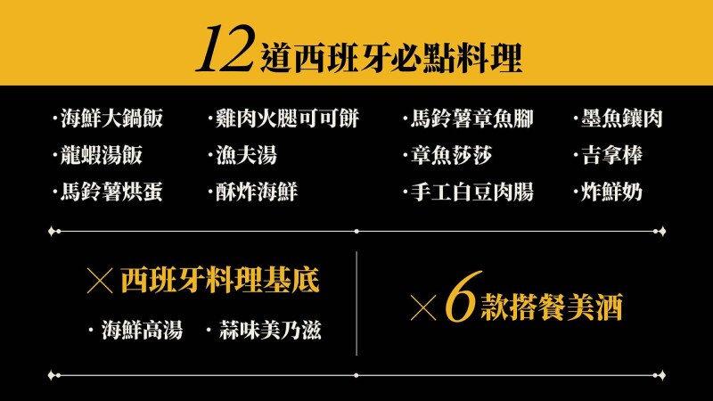 這堂線上課程嚴選PS TAPAS西班牙餐酒館開業15年來的菜單精華,不藏私分享12道必吃西班牙料理製作秘訣,讓你在家也能做出人氣餐酒館的明星菜品,以及能廣泛運用的高湯與沾醬。